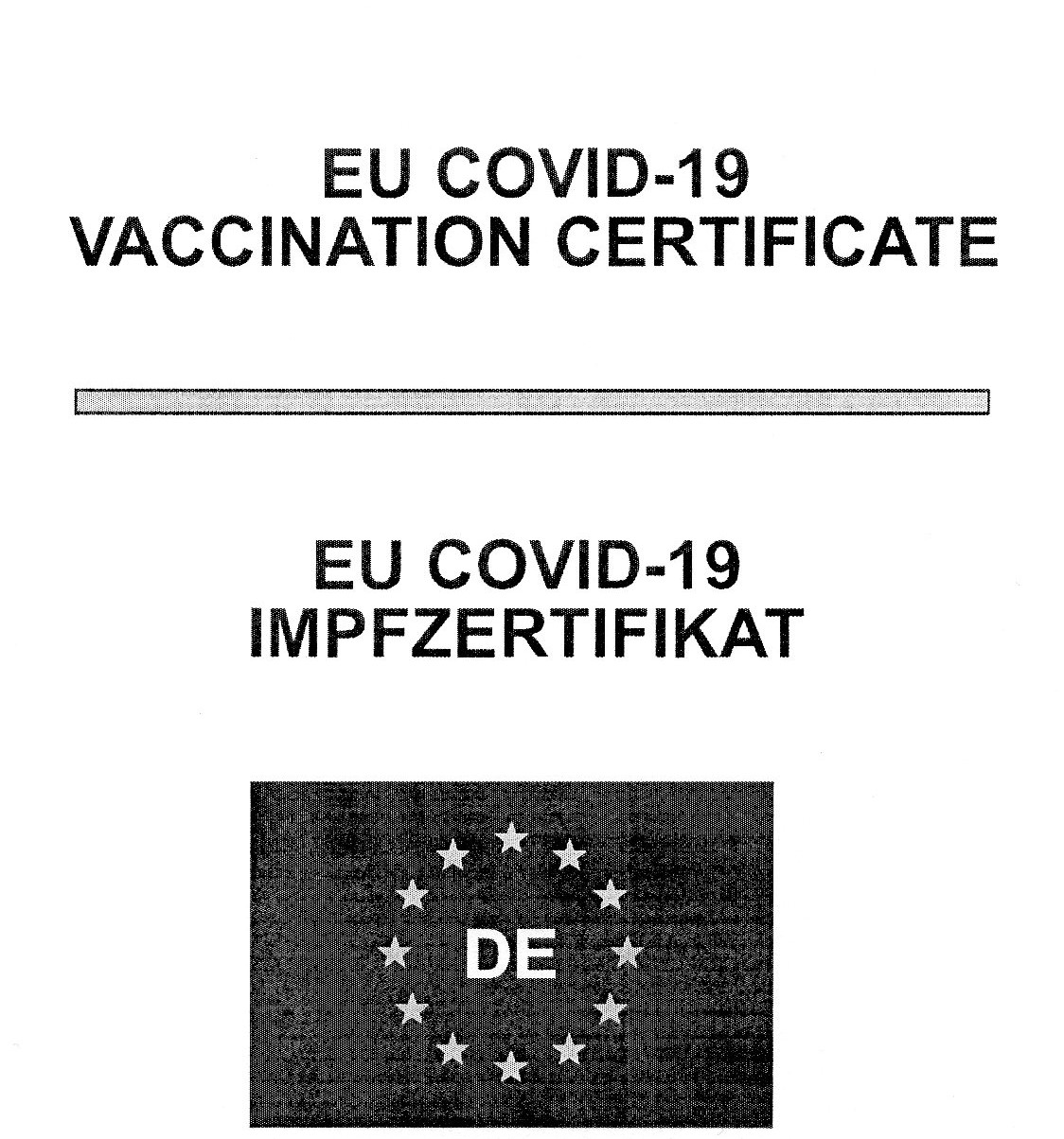 Titelseite des Impfzertifikats (vom Impfzentrum als PDF-Datei auch farbig)