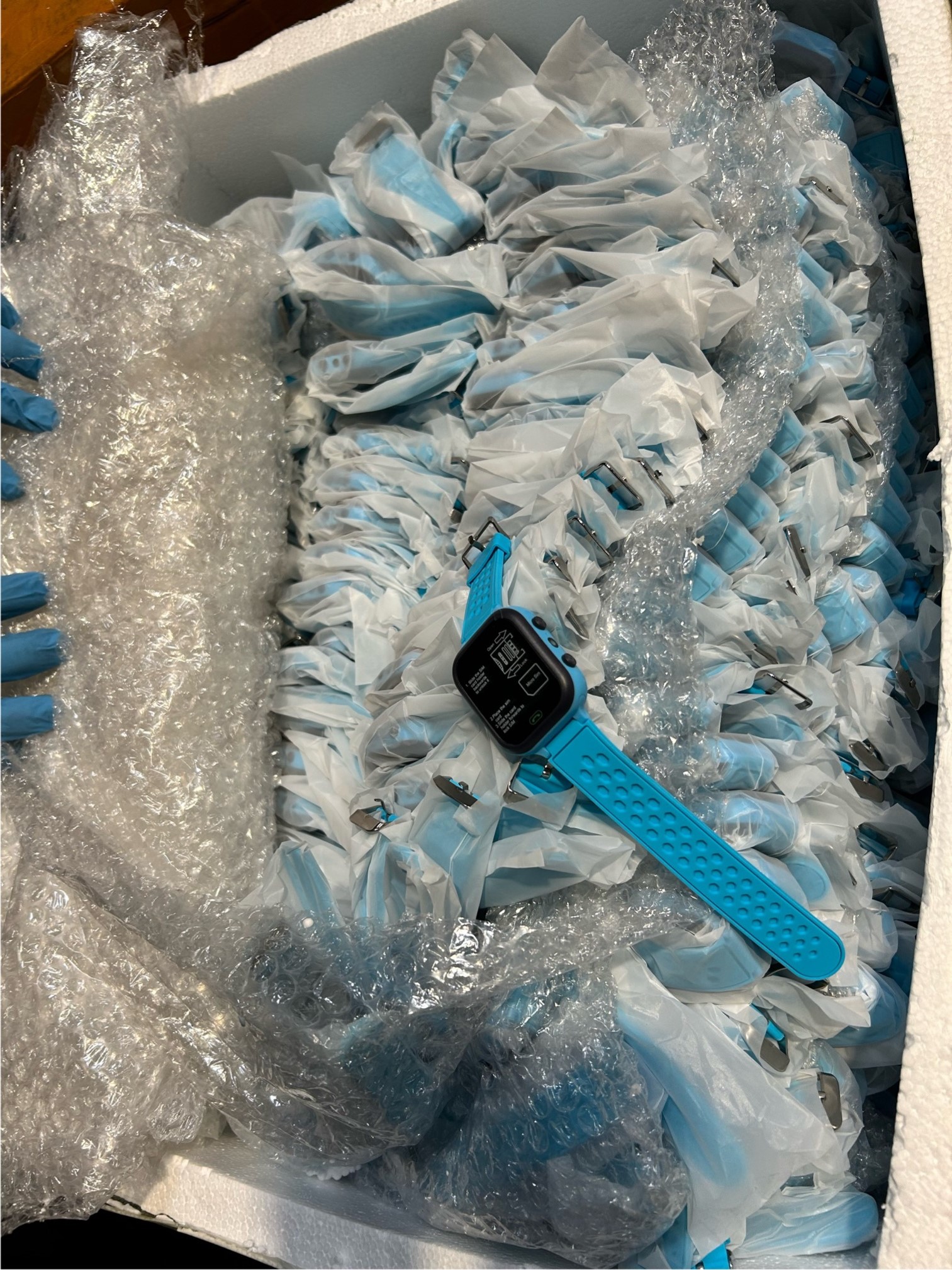 Ein Karton voller Kinder-Armbanduhren