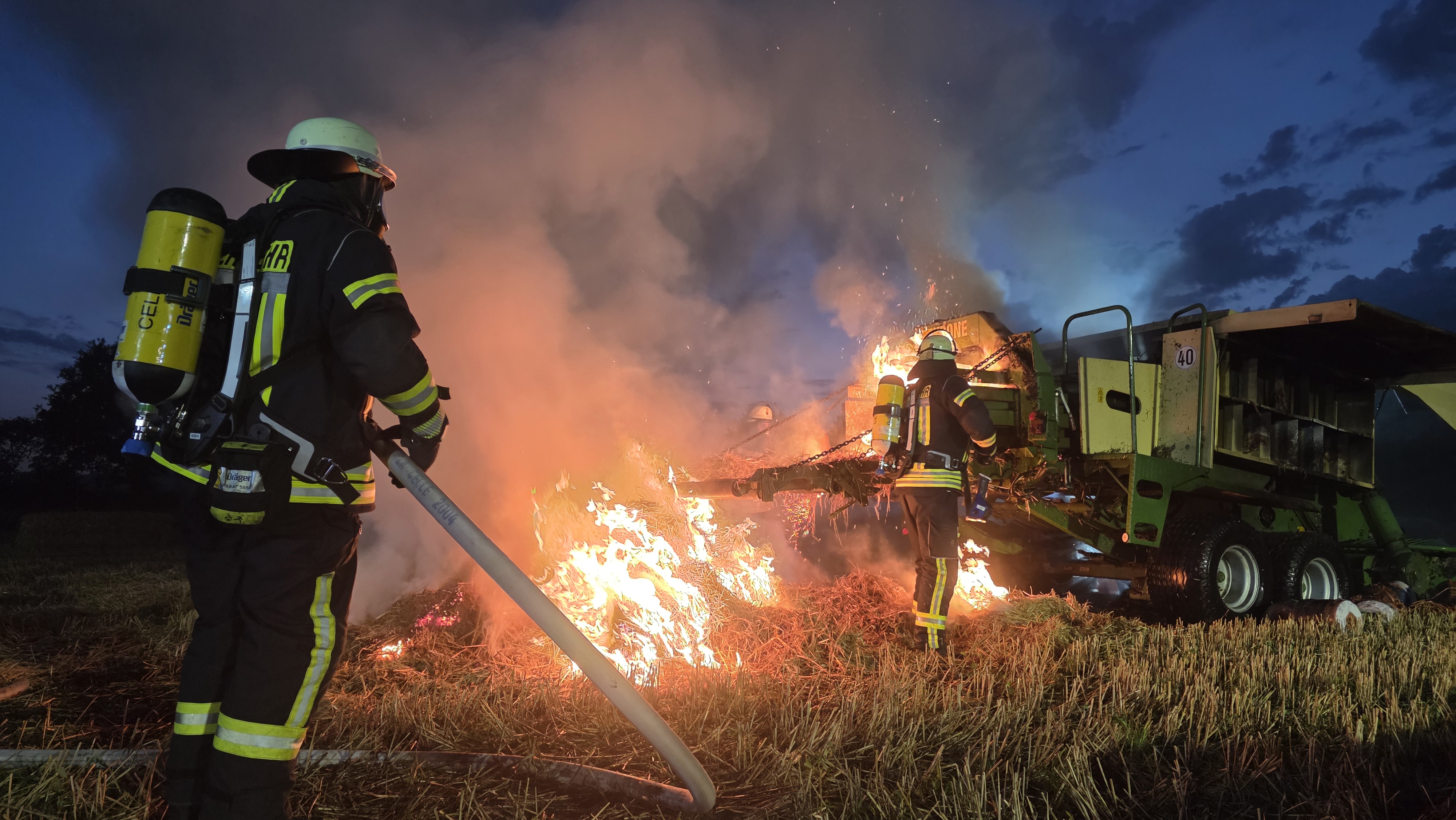 Celle: Strohballenpresse brennt in Wietzenbruch