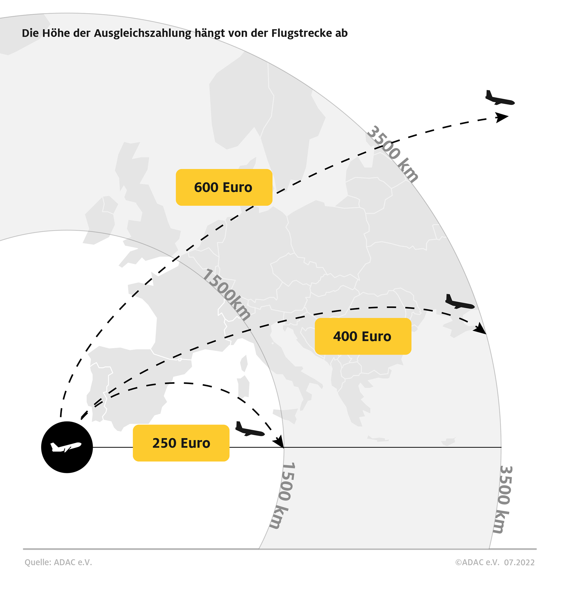 Die Höhe der pauschalen Ausgleichszahlung richtet sich nach der Flugstrecke