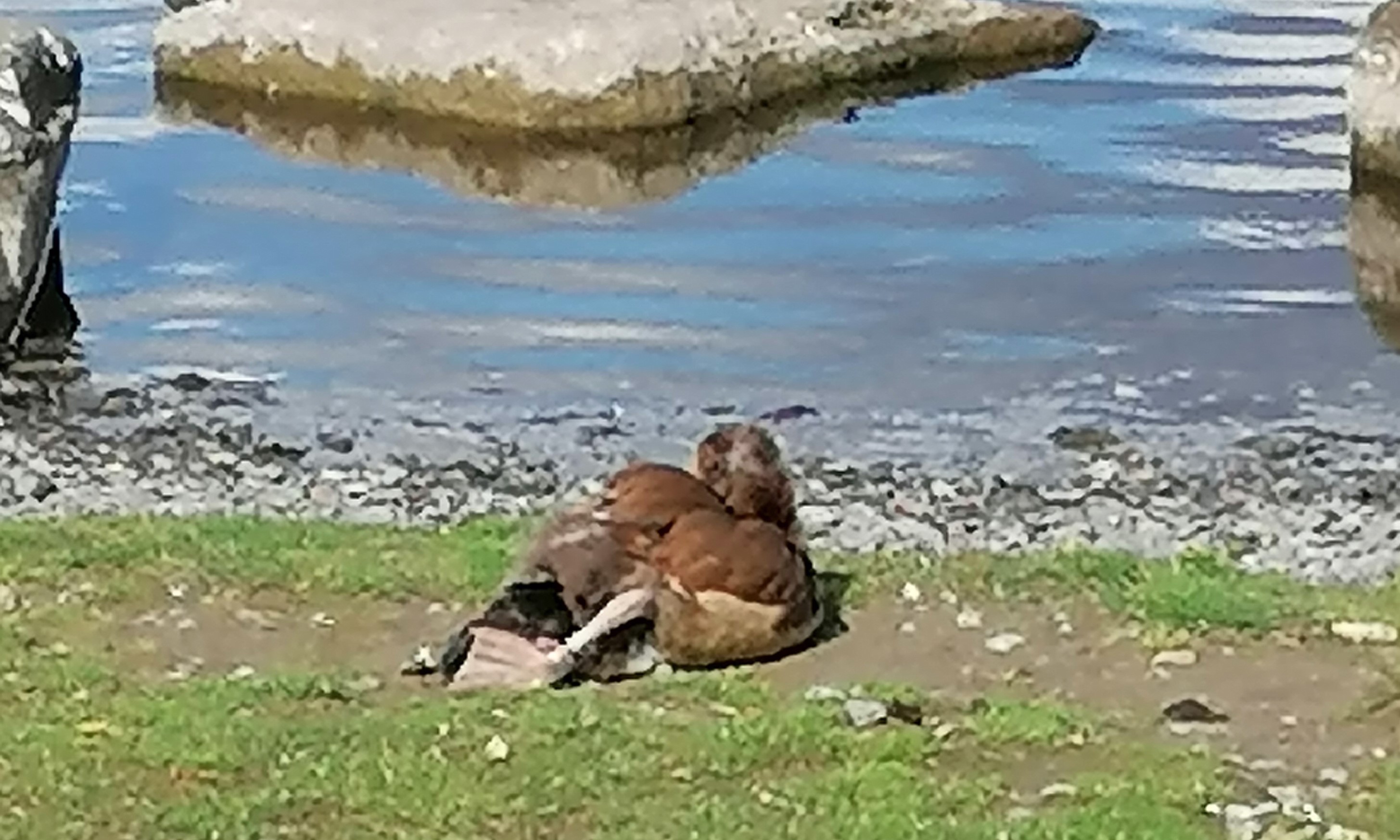 Die mit Garn gefesselte Nilgans am Phoenixsee. Bild: PP Dortmund