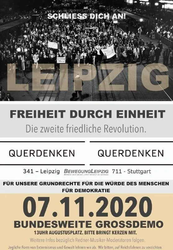 Plakat Querdenken 341 für Demo in Leipzig am 7.11.20