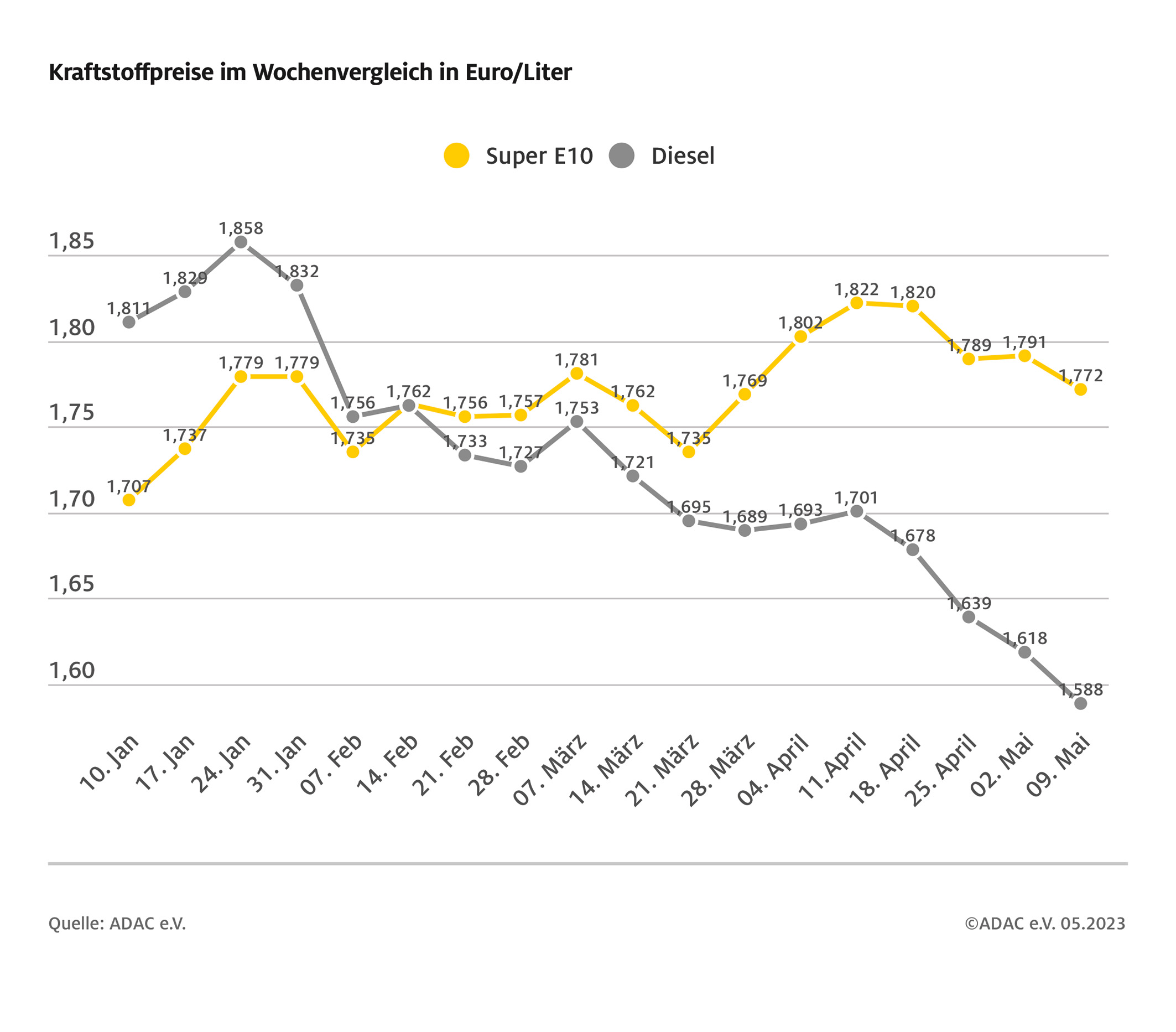 Kraftstoffpreise im Wochenvergleich