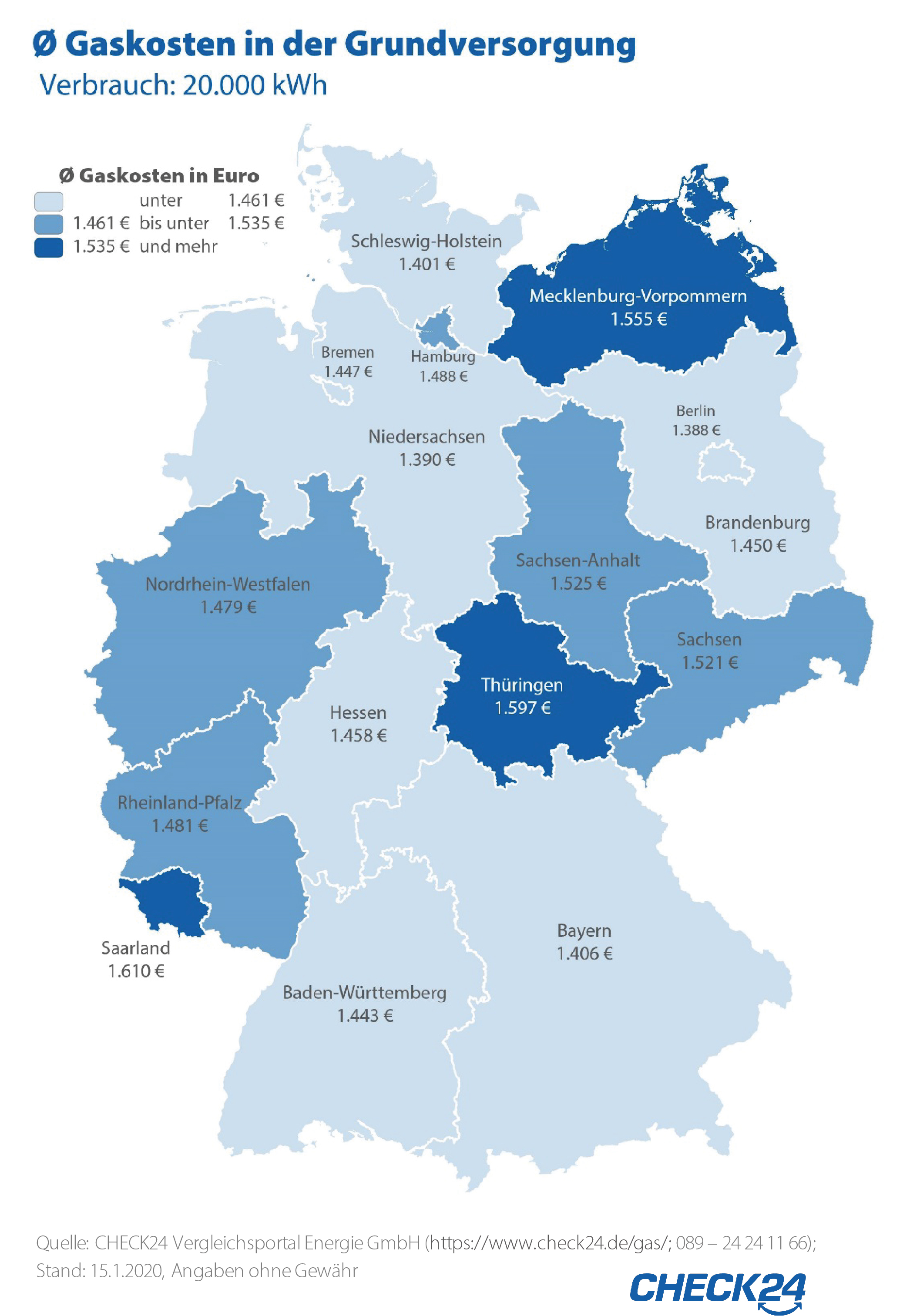 Zurück zu Gas für Verbraucher im Saarland am teuersten, in Berlin am günstigsten