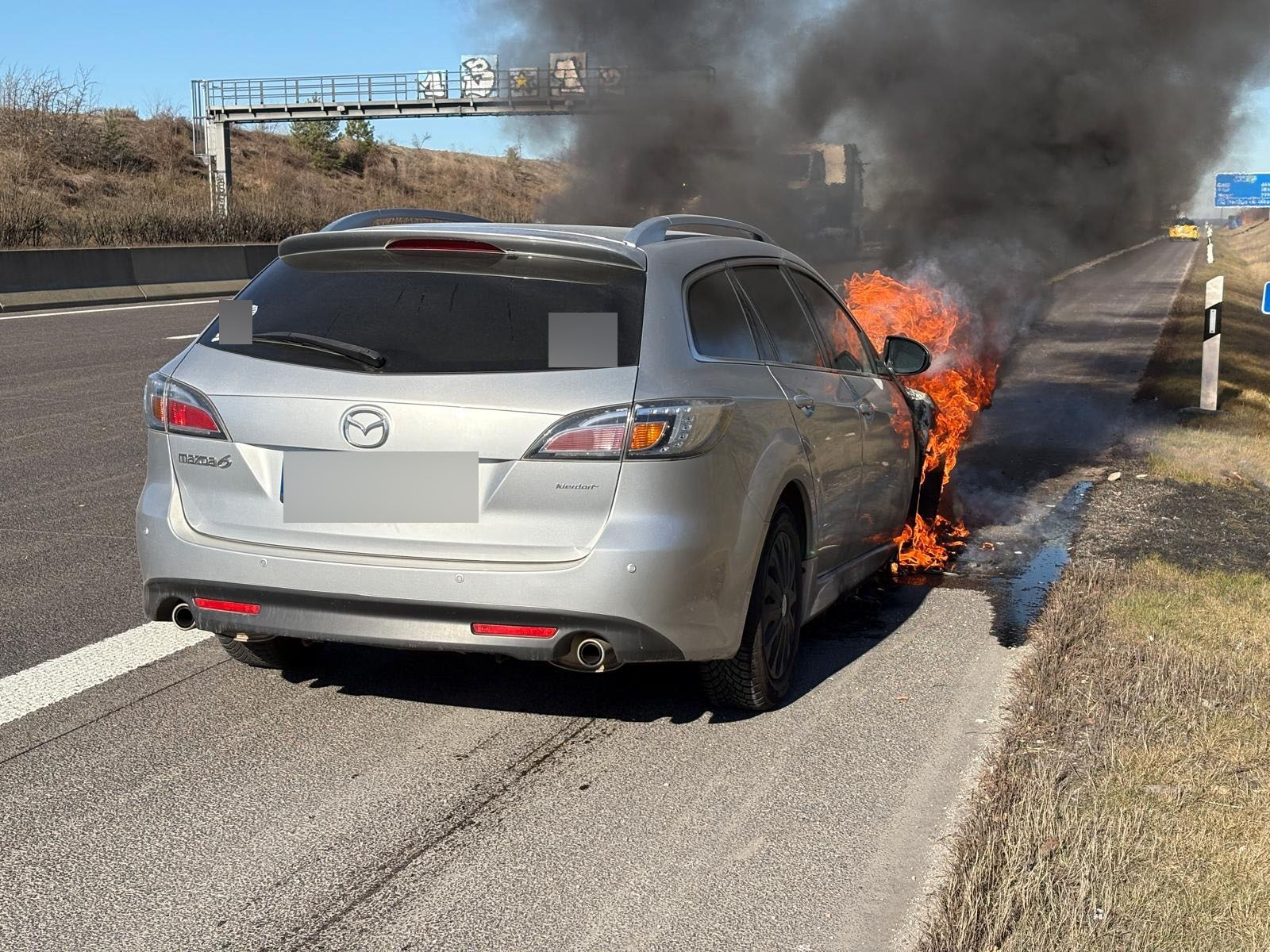 A4 Höhe Bucha: Pkw geht in Flammen auf