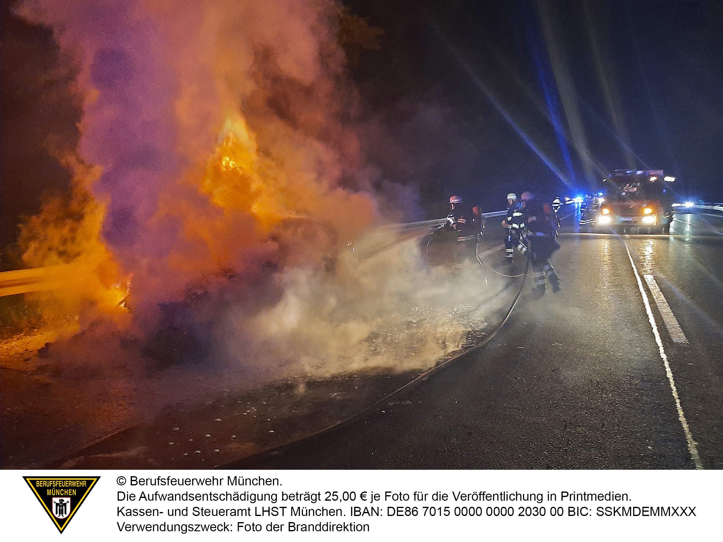 München: Fahrzeug brennt auf Autobahn A95 Richtung Garmisch