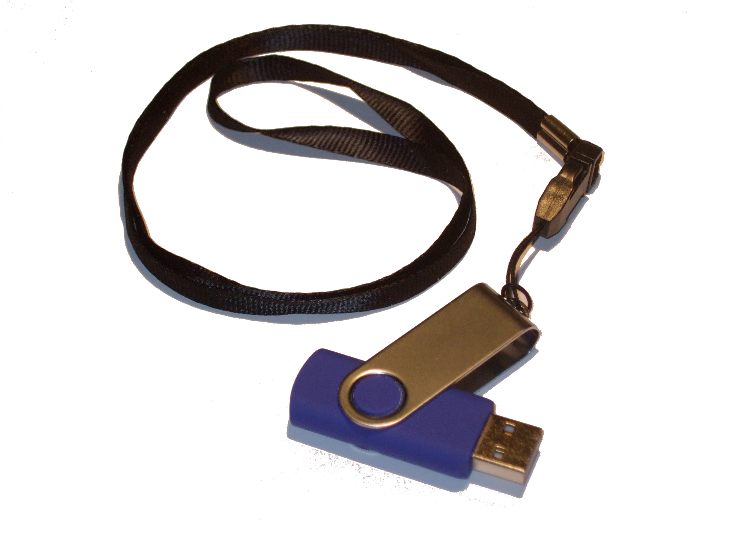 USB-Stick mit schlichtem, unbedrucktem Lanyard und Sicherheitssteckverbindung (Symbolbild)