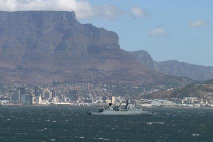 Die Fregatte HAMBURG F220 der Fregatten Klasse 124 vor dem Tafelberg in Kapstadt in Südafrika. Bild: Deutsche Marine