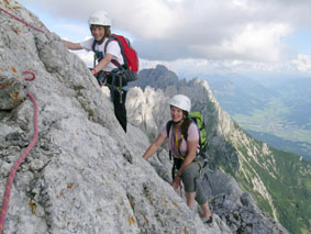 Silvia und David Huber mit Gipfelbüchern unterwegs zur Ellmauer Halt. (Foto: Bergsteigerschule Wilder Kaiser)