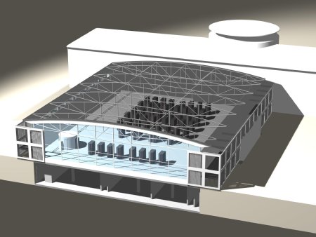 Der neue Platz des Superrechners JUBL selbst ist die moderne, freitragende Halle. Sie ist so ausgelegt, dass Sie flexibel auch kommenden Rechnergenerationen Platz bietet. Quelle: Forschungszentrum Jülich