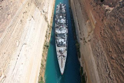 Die Fregatte NIEDERSACHSEN durchquert den Kanal von Korinth. Bild: Ricarda Schönbrodt