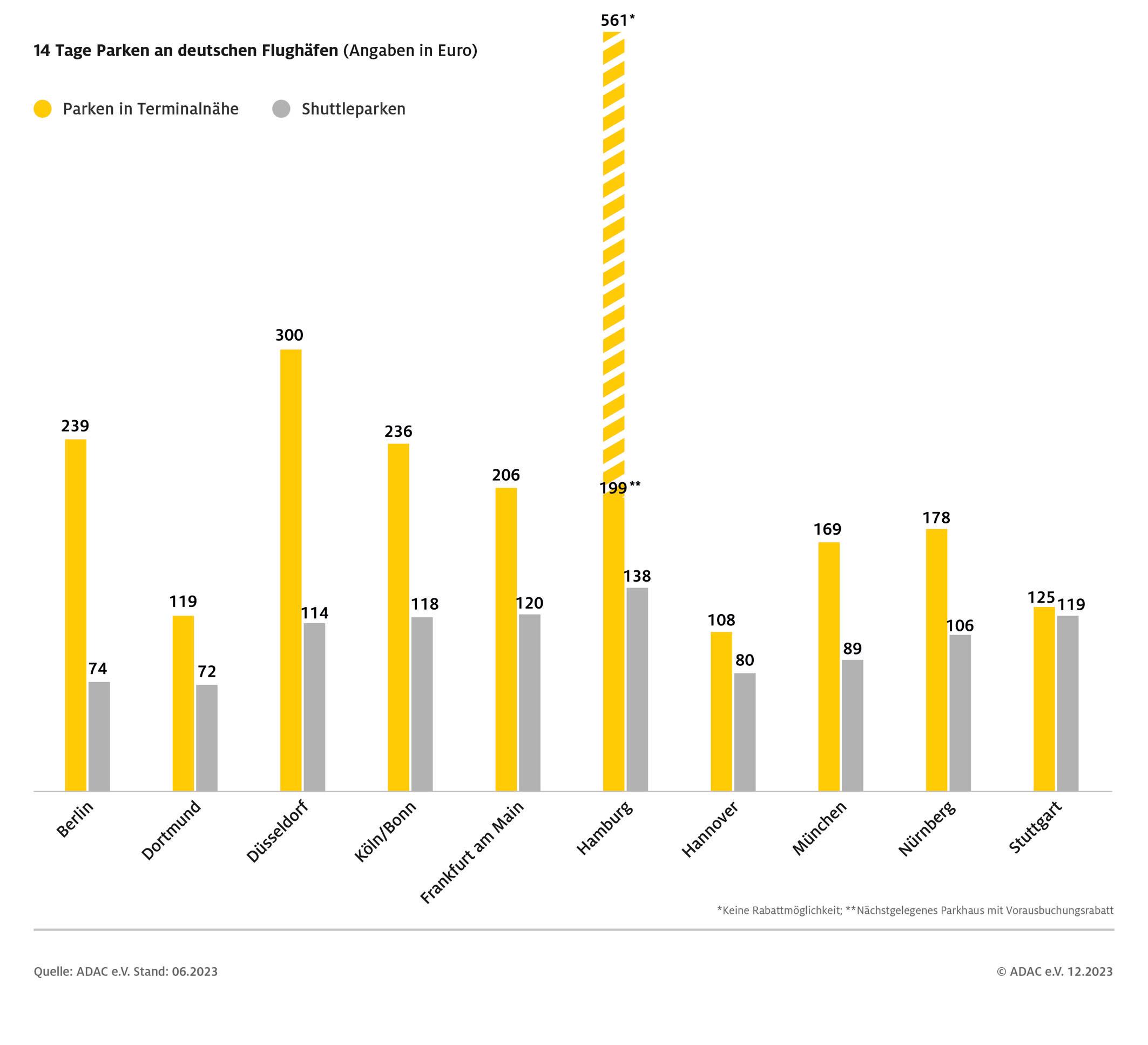 Zurück zu Parken an Flughäfen - ohne Planung wird's teuer: ADAC untersucht Kosten und gibt Tipps Große Unterschiede bei den Parkgebühren