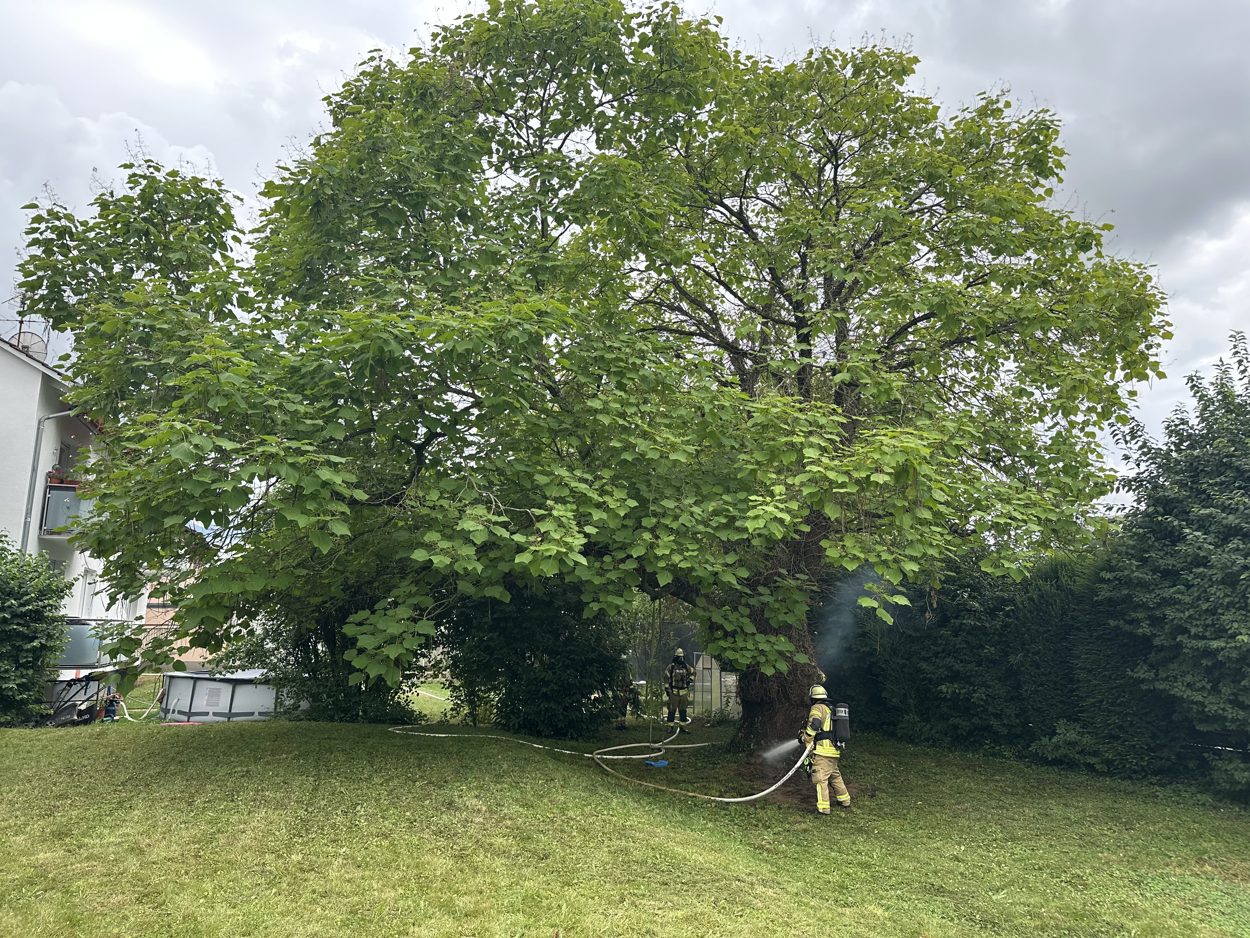 Zurück zu Weinheim: Baumbrand im Kastanienweg erfordert aufwendigen Löscheinsatz