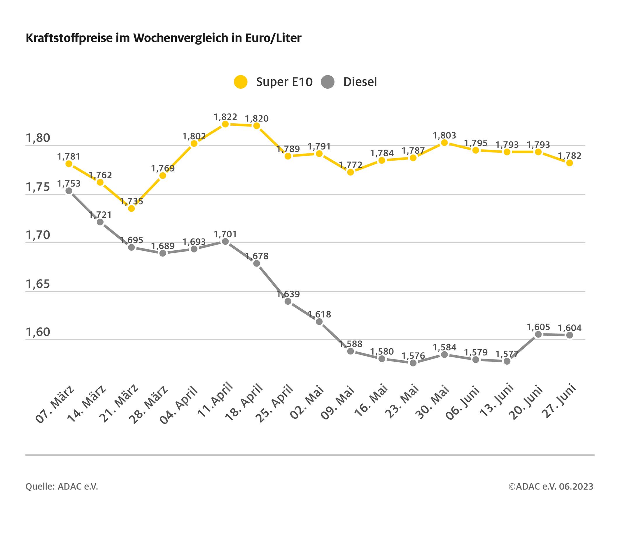 Kraftstoffpreise im Wochenvergleich
