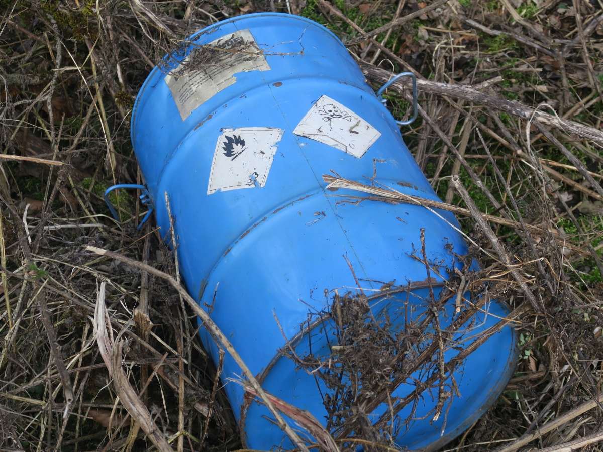 Wer kann Angaben zur Herkunft der blauen Fässer machen? Bild: Polizei