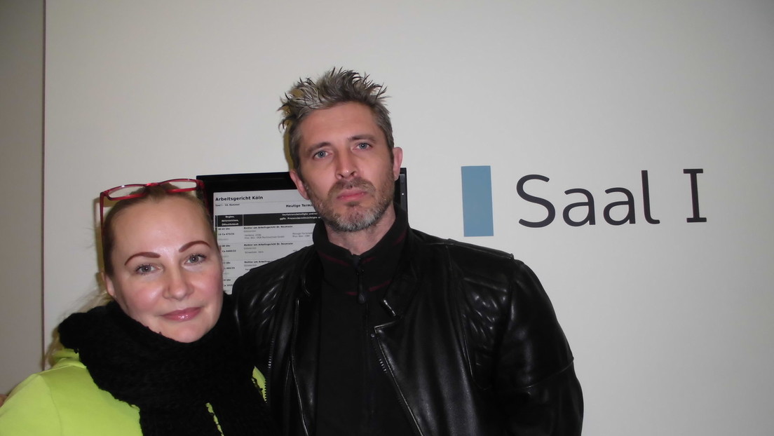 Die Friedensaktivisten Elena Kolbasnikova und Max Schlund im Arbeitsgericht Köln, 28.03.2023 Bild: Felicitas Rabe