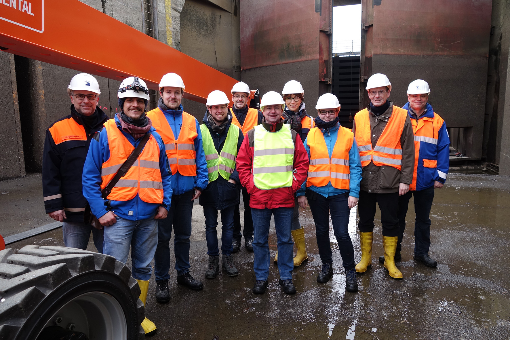 Die PREVIEW-Expertengruppe mit Projektleiter Prof. Dr. Jan Akkermann bei einer Begutachtung einer Schleuse Quelle: Jan Akkermann (idw)
