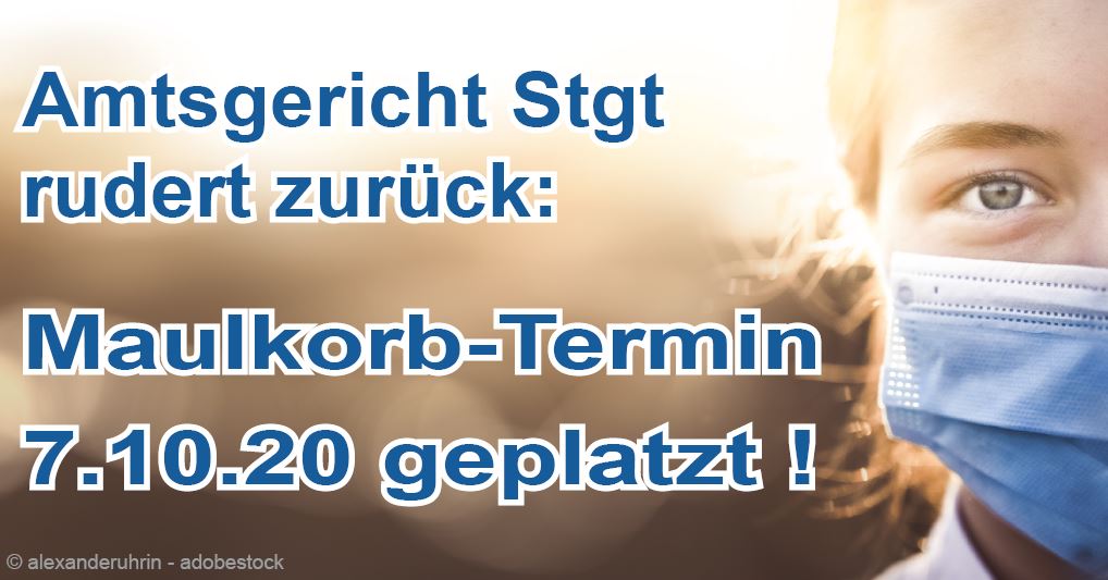 Zurück zu Maulkorb-Gerichtstermin 7. Okt. 2020 in Stuttgart geplatzt!