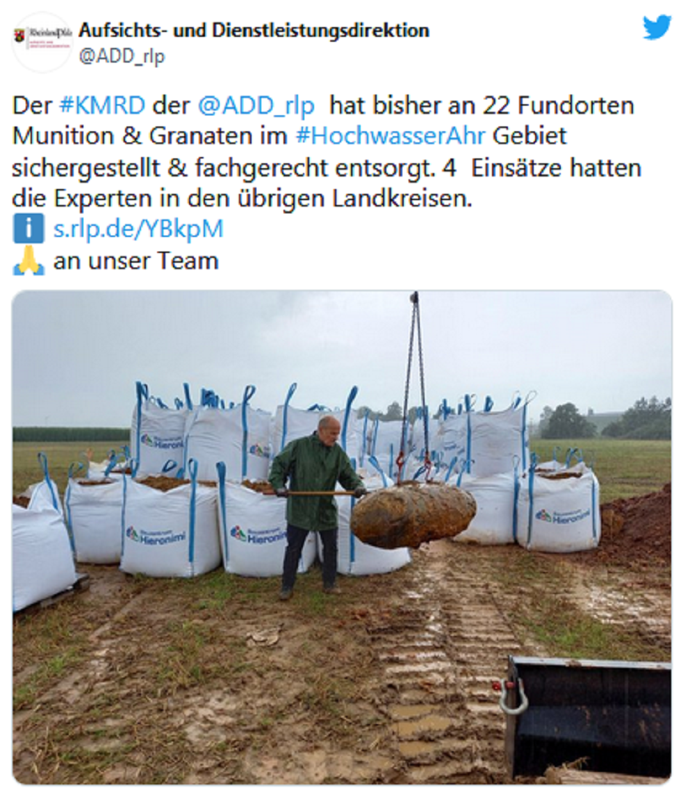 Zurück zu Überschwemmungen in Rheinland-Pfalz schwemmte 350 Kilogramm Weltkriegsmunition frei