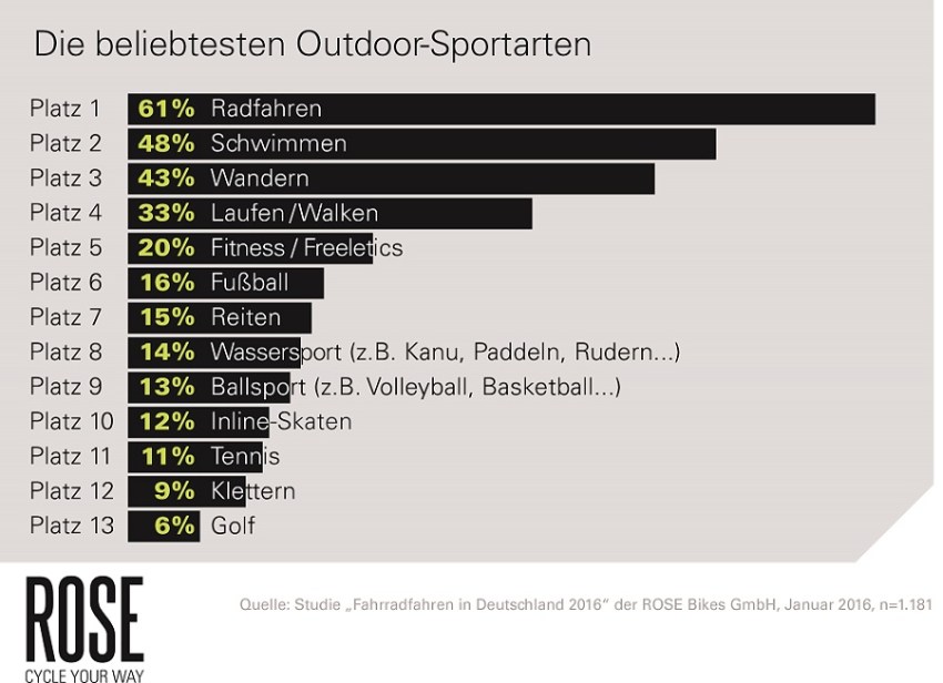 Studie: Fahrradfahren ist Outdoor-Sportart Nr.1