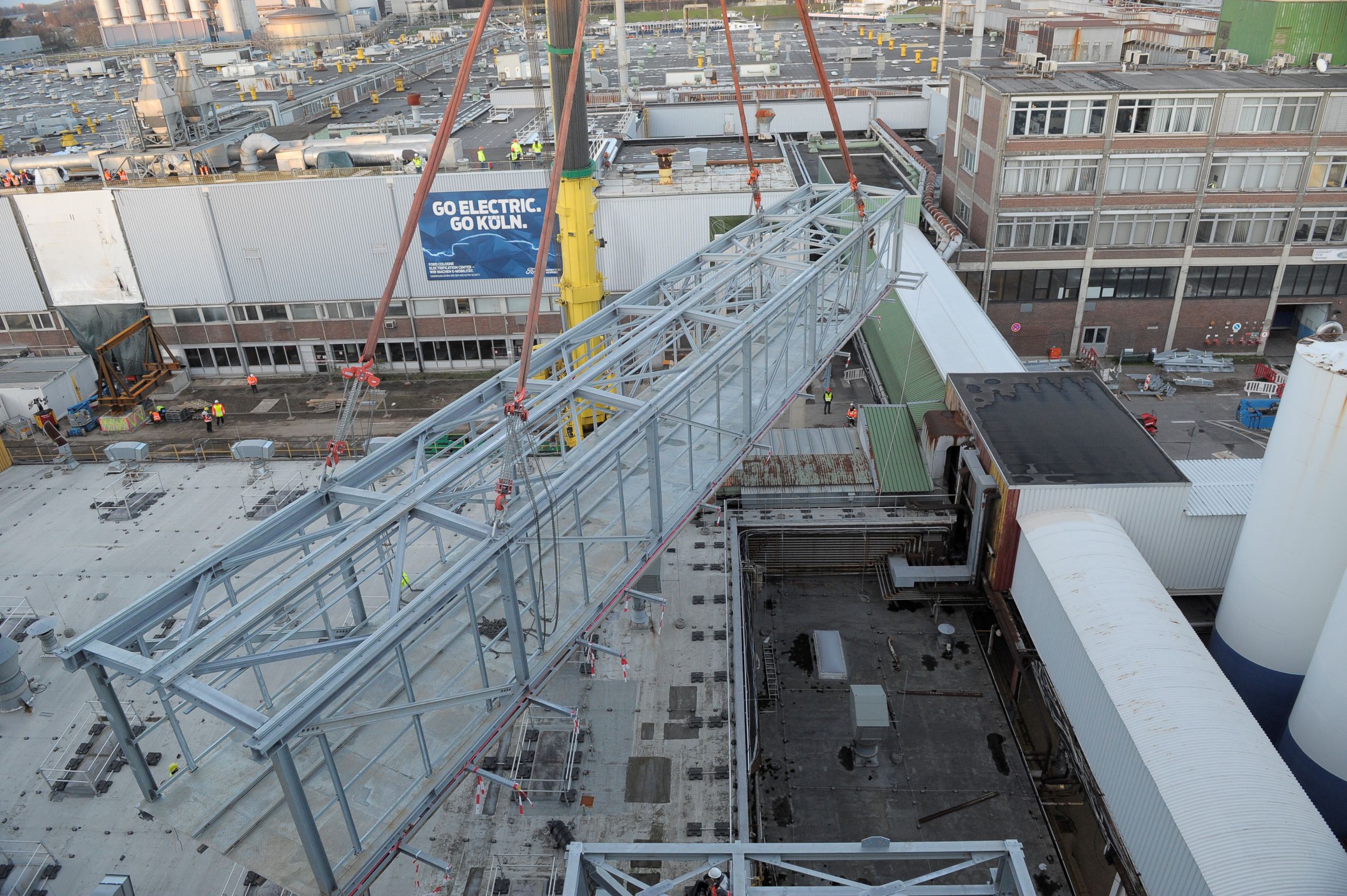 Brücke an Spezialkran zur Verbindung Ford Lackvorbereitung mit Trockenöfen. / Weiterer Text über ots und www.presseportal.de/nr/6955 / Die Verwendung dieses Bildes für redaktionelle Zwecke ist unter Beachtung aller mitgeteilten Nutzungsbedingungen zulässig und dann auch honorarfrei. Veröffentlichung ausschließlich mit Bildrechte-Hinweis. Bildrechte: Ford-Werke GmbH Fotograf: Ford