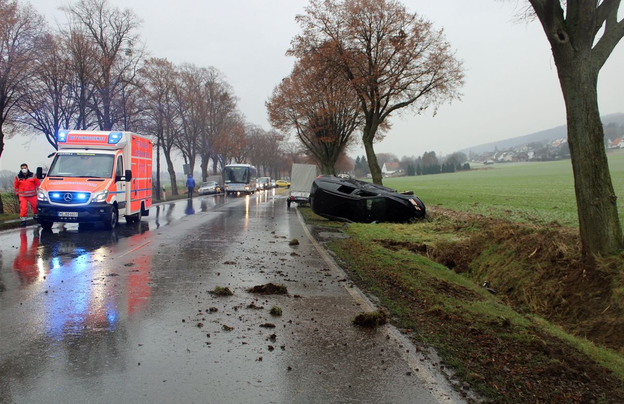 Lübbecke: Pkw samt Anhänger überschlägt sich