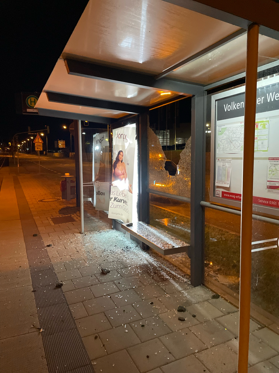 Erfurt: Mehrere Wartehäuschen zerstört