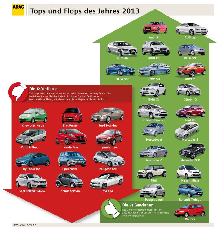ADAC Pannenstatistik 2013: Zwölf Modelle fallen durch