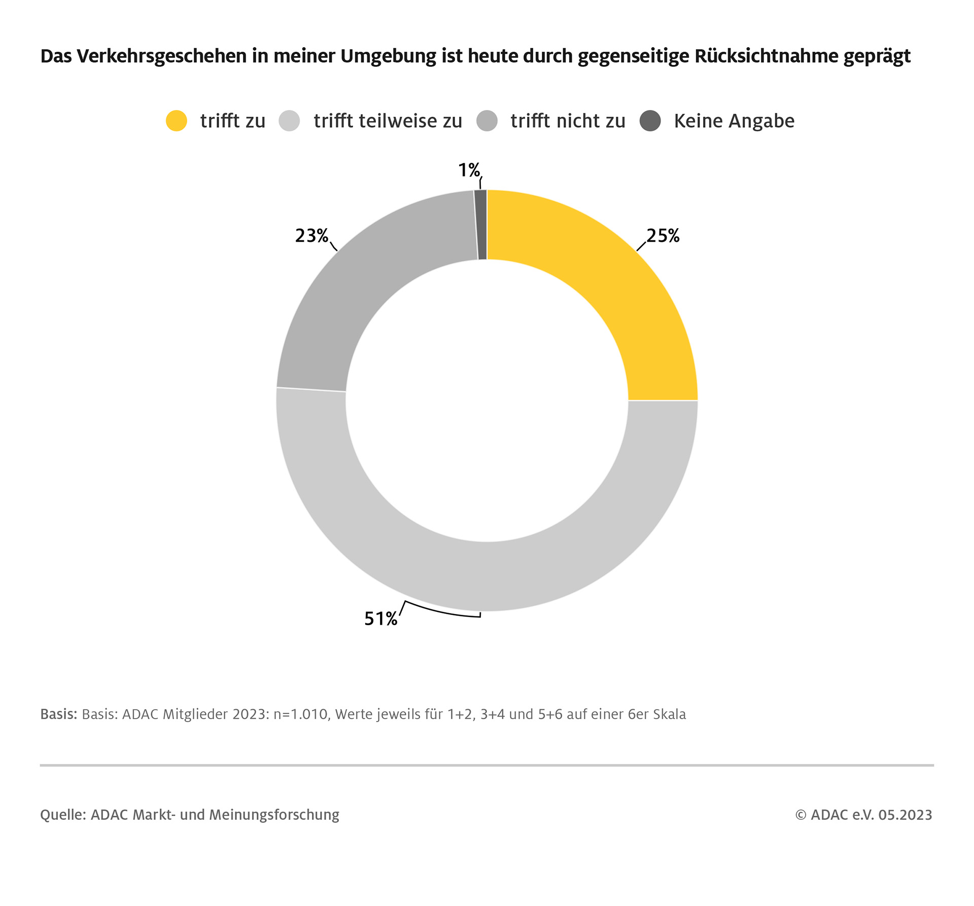 Nur ein Viertel der befragten ADAC Mitglieder gaben an, rücksichtsvolles Verhalten auf den Straßen zu erfahren.