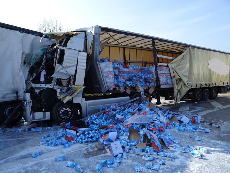 Bild: PP Mannheim Lkw-Auffahrunfall Autobahn