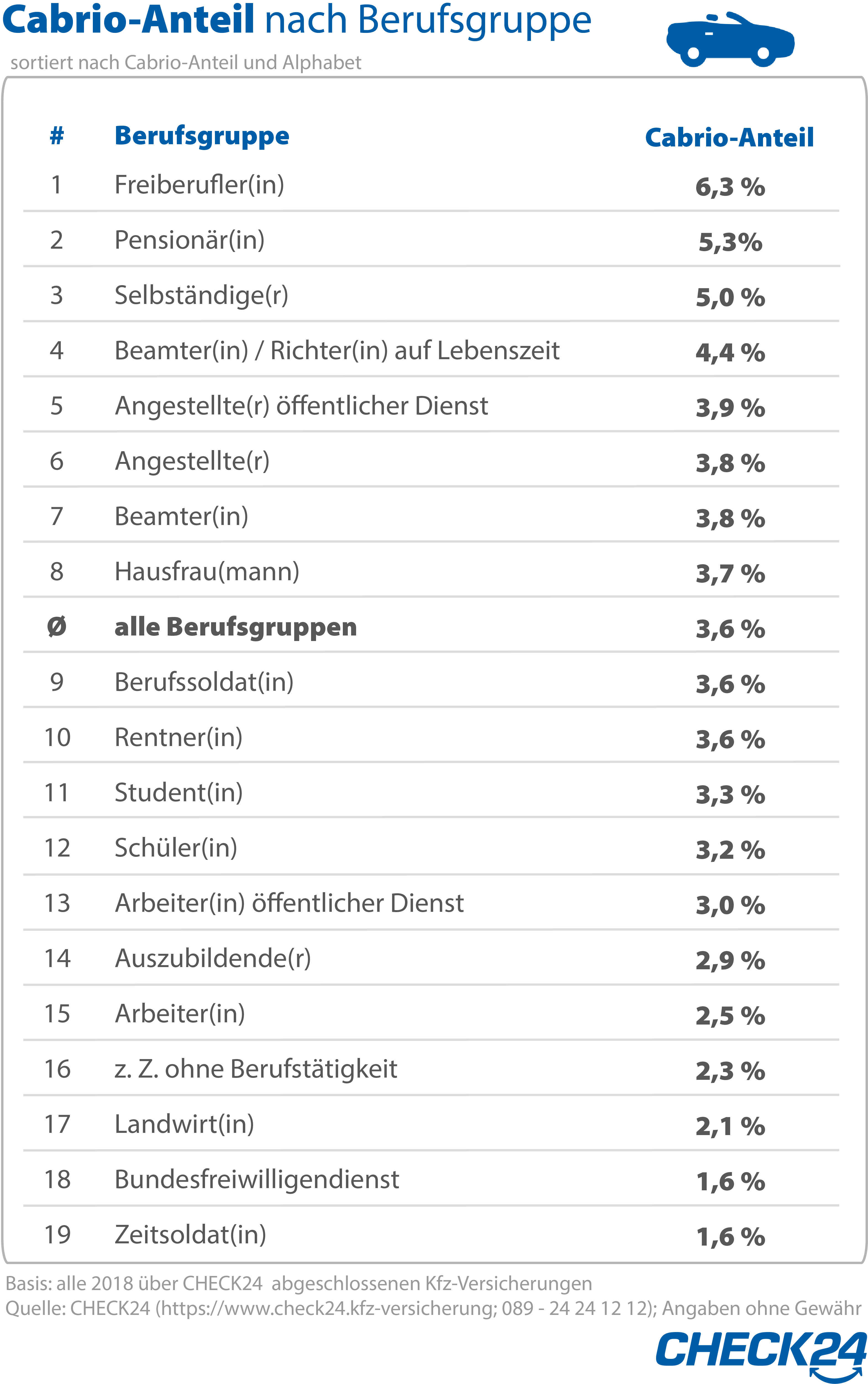Zurück zu Freiberufler und Pensionäre am häufigsten mit dem Cabrio unterwegs