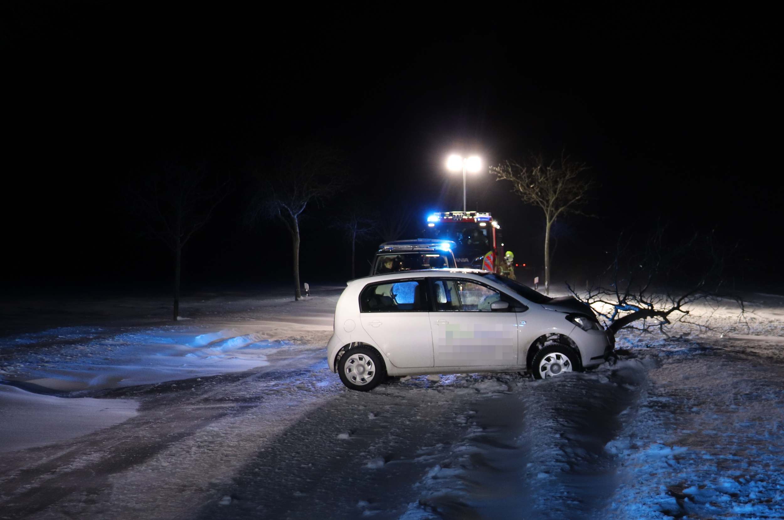 In Schneeverwehungen auf der K1 bei Paderborn-Dahl verunglückte eine junge Fahrerin schwer Bild: Polizei