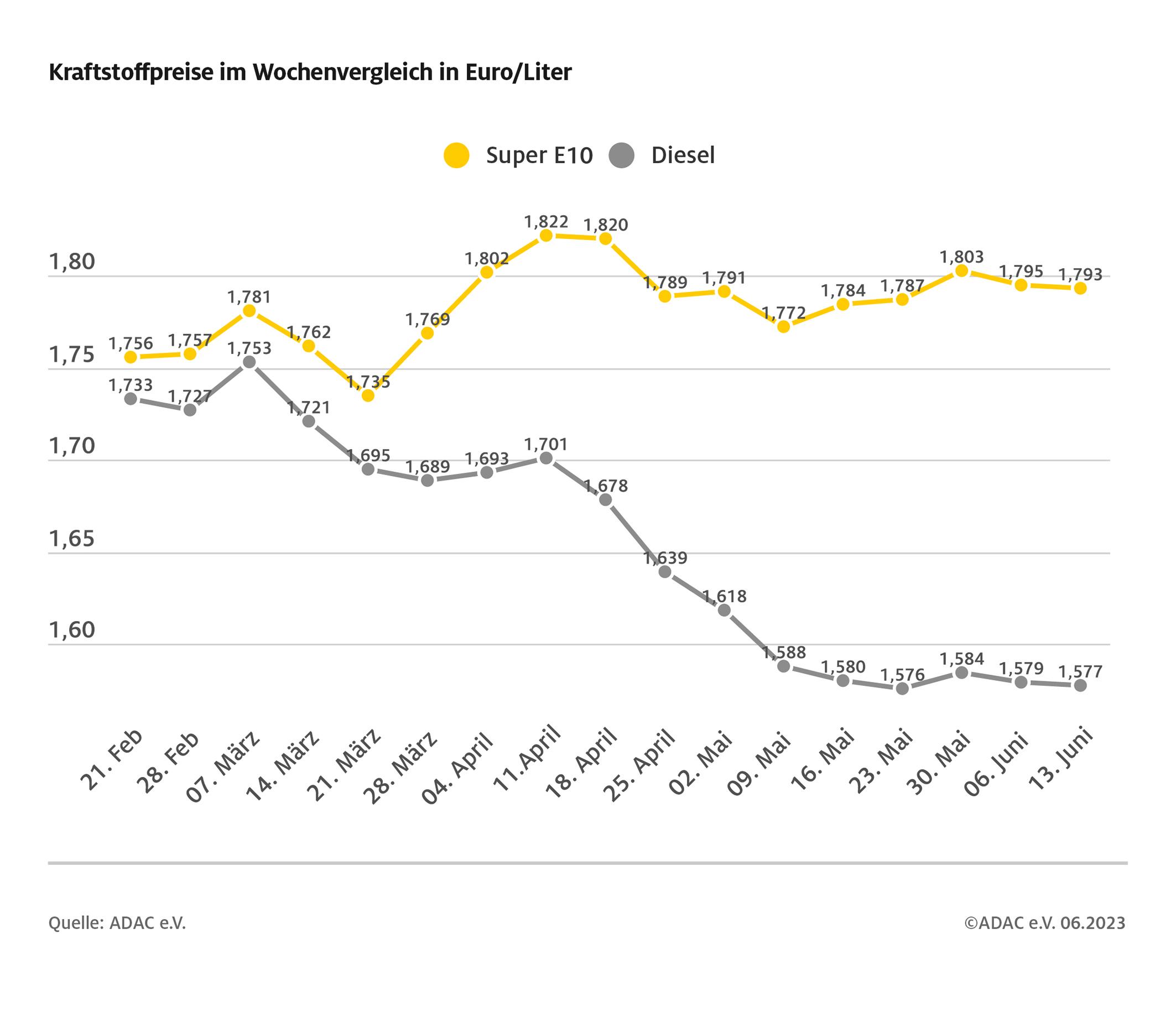 Kraftstoffpreise im Wochenvergleich Bild: ADAC Fotograf: © ADAC