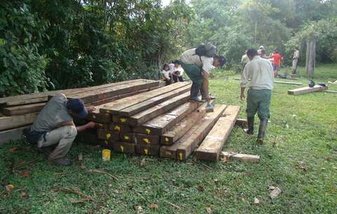 Illegal geschlagenes Holz, das bei der SERNANP-Razzia im Manú-Nationalpark beschlagnahmt wurde. Bild: SERNANP/Survival