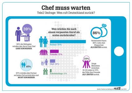Tele2 Studie zeigt: Fast die Hälfte der Deutschen ruft Vorgesetzte nicht zurück. Grafik: "obs/TELE2"