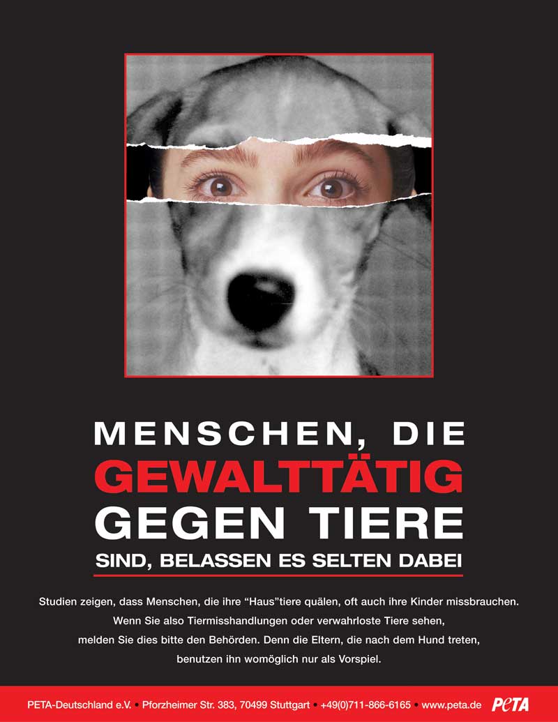 Zurück zu PETA weist auf Zusammenhang zwischen Tierquälerei und Gewalttaten am Menschen hin