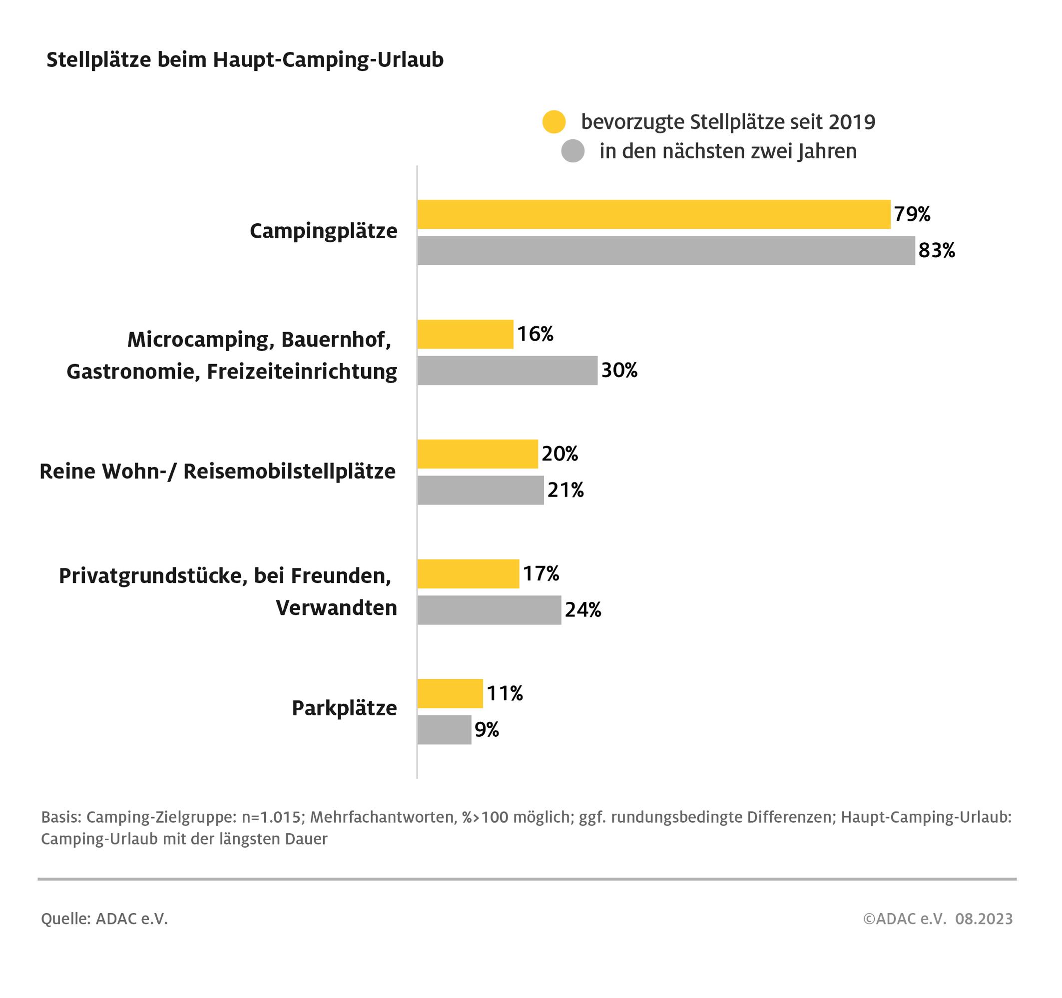 Zwar bevorzugt die Mehrheit (79 Prozent) den Campingplatz, aber bei den Plänen für die nächsten zwei Jahre kommen alternative Stellplatzoptionen häufiger in Frage. / Weiterer Text über ots und www.presseportal.de/nr/7849 / Die Verwendung dieses Bildes für redaktionelle Zwecke ist unter Beachtung aller mitgeteilten Nutzungsbedingungen zulässig und dann auch honorarfrei. Veröffentlichung ausschließlich mit Bildrechte-Hinweis. Bildrechte: ADAC Fotograf: ADAC