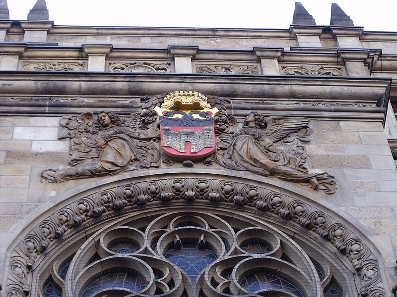 Duisburger Wappen am Rathaus in Duisburg. Bild: Oceancetaceen / wikipedia.org