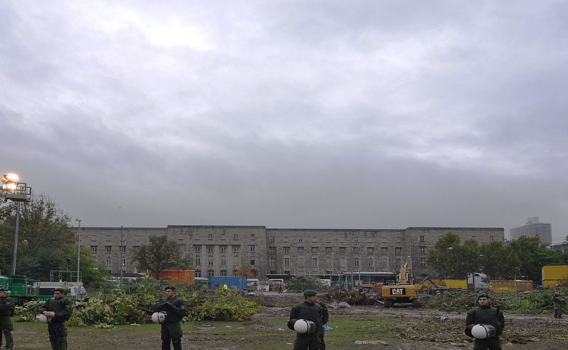 Brache im Stuttgarter Mittleren Schlossgarten nach nächtlicher Baumfällaktion im Projekt Stuttgart 21. Im Hintergrund der Südflügel des Hauptbahnhofs. Bild: Mussklprozz / de.wikipedia.org