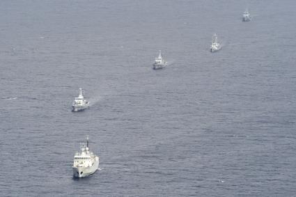 A264 HSwMS TROSS÷, M75 HSwMS VINGA, M76 HSwMS VEN, 624 ORP CZAJKA and M1062 FGS SULZBACH-ROSENBERF outside Naval Base Frederikshavn Date: 2011-09-12