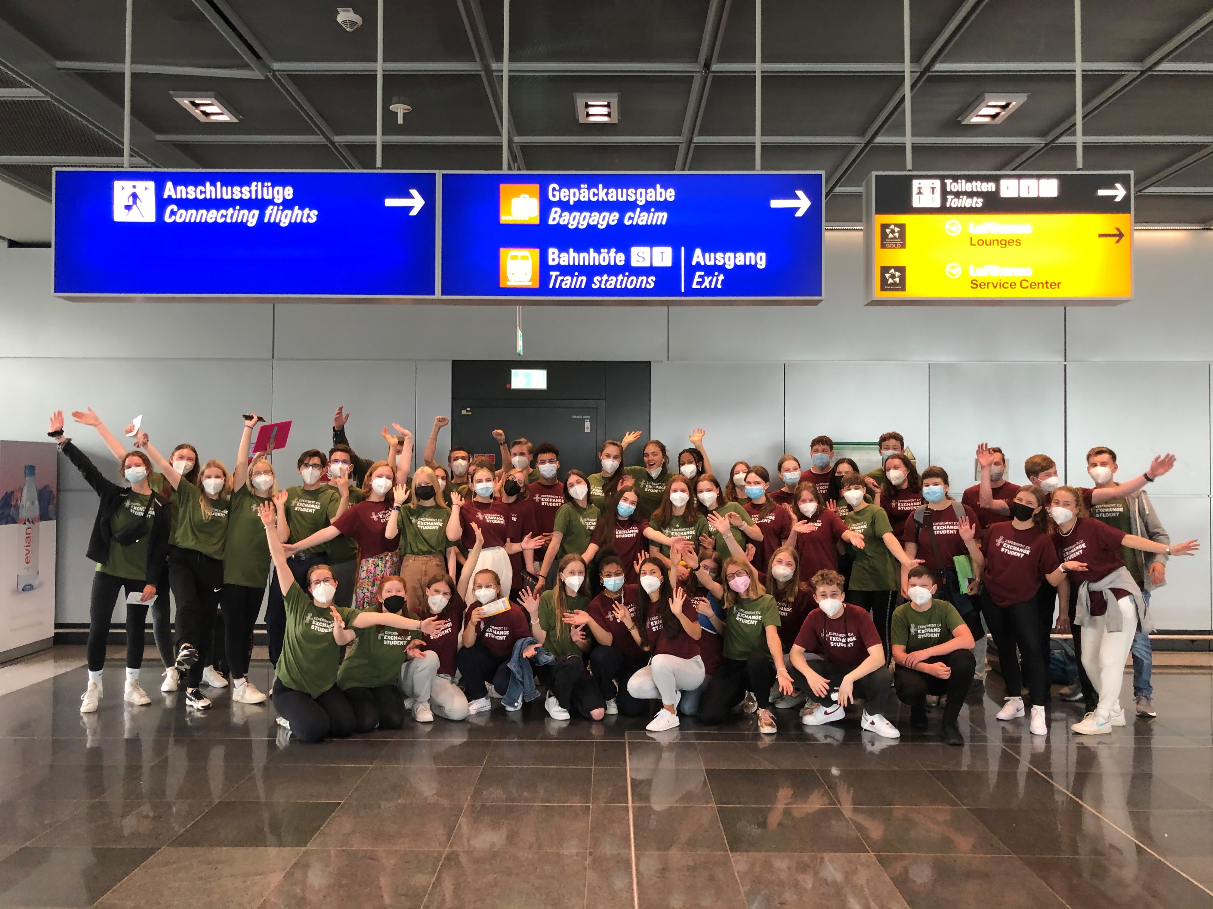 Der diesjährige Experiment e.V.-PPP-Jahrgang vor dem Abflug am Frankfurter Flughafen. Bild: Experiment e.V. Fotograf: Experiment e.V./privat
