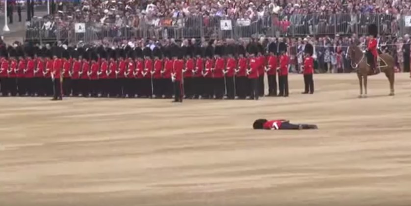 Bild: Screenshot Youtube Video "Guardsman carried off in stretcher after collapsing at ceremony"