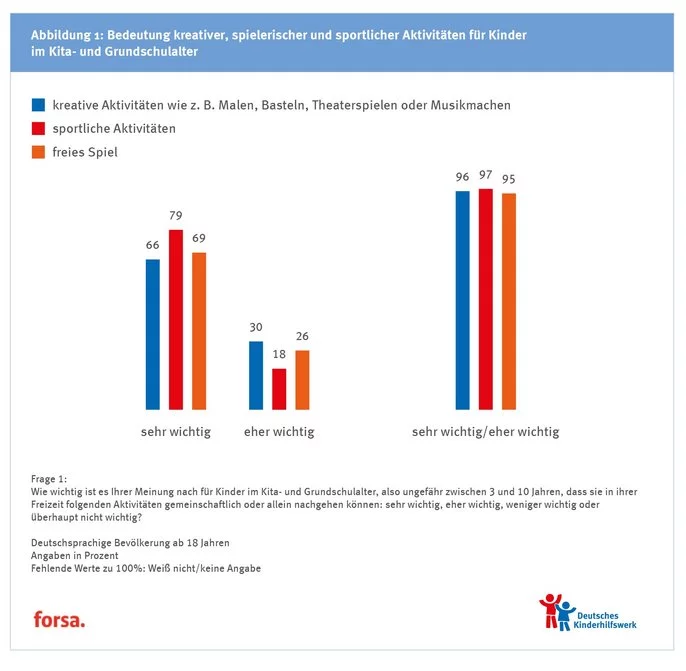 Zurück zu Weltspieltag: Repräsentative Umfrage verdeutlicht herausragende Bedeutung kreativer, spielerischer und sportlicher Aktivitäten für Kinder