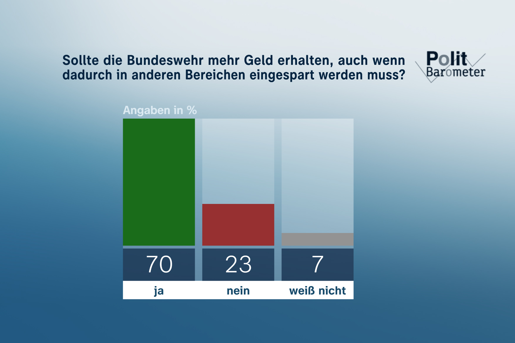 Zurück zu ZDF-Politbarometer April I 2024 Mehrheit: Bundeswehr soll mehr Geld erhalten