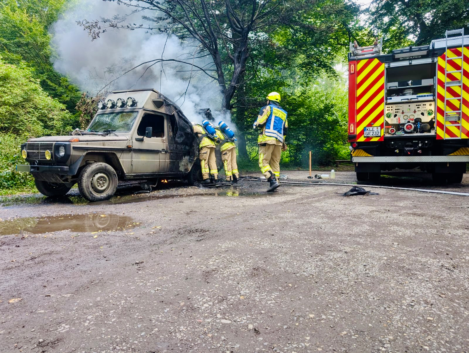 Rheurdt: Feuerwehr löscht historischen Geländewagen