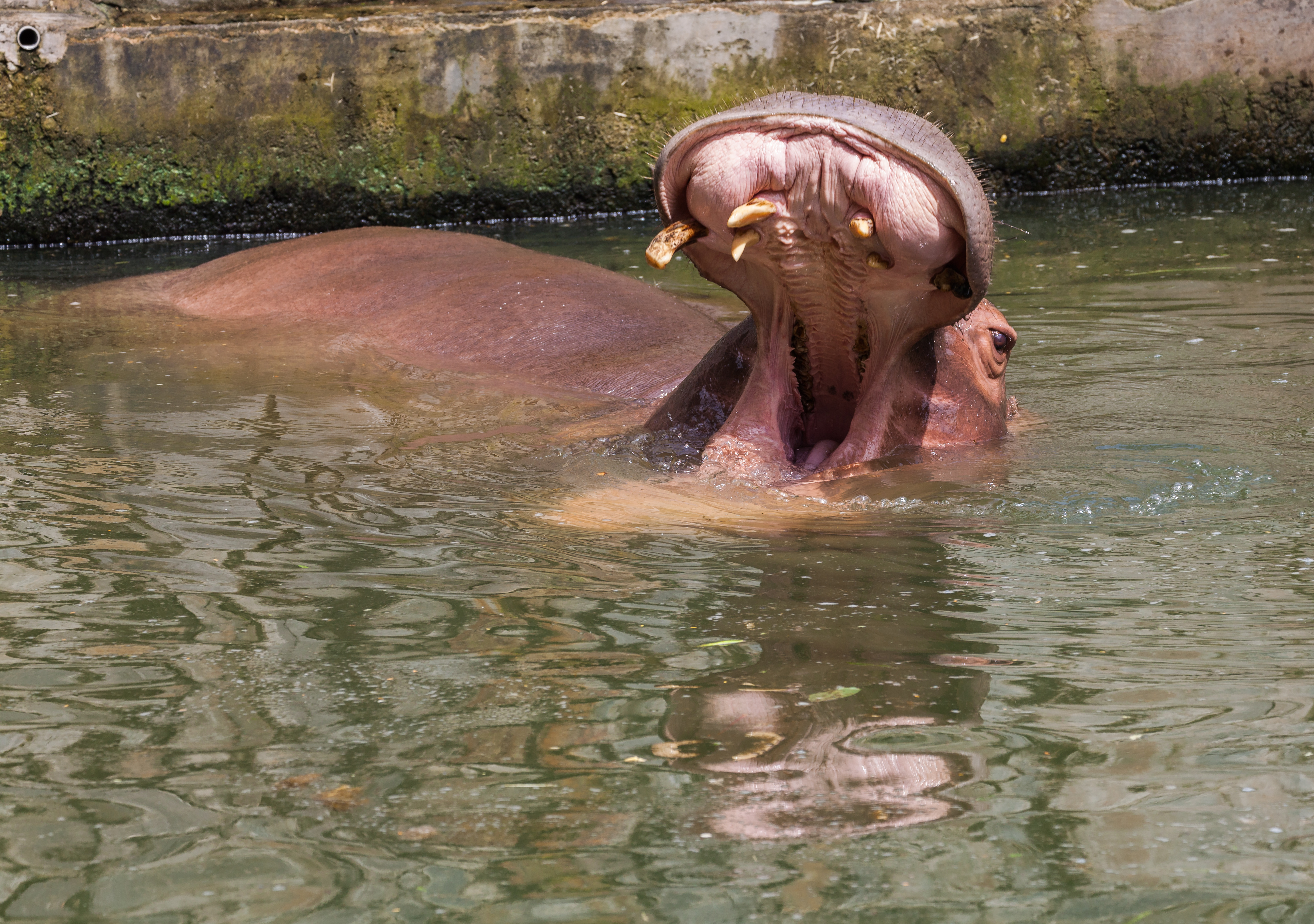 Gähnendes Flusspferd im Wasser (Symbolbild)