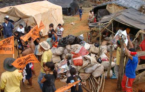 Guarani-Indianer, die von ihrem Land vertrieben wurden, leben am Straßenrand in bitterer Armut. Bild: CIMI