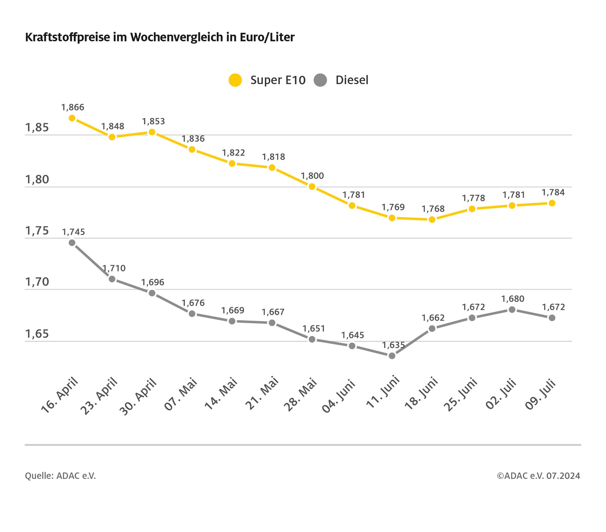 Zurück zu Benzin geringfügig teurer, Diesel etwas billiger: Ölpreis und Euro-Dollar-Wechselkurs in etwa auf Vorwochenniveau