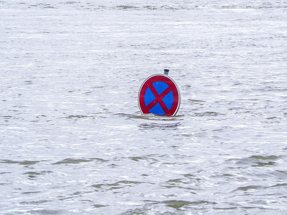 Vom Hochwasser betroffene Straßenzüge in Flensburg gesperrt