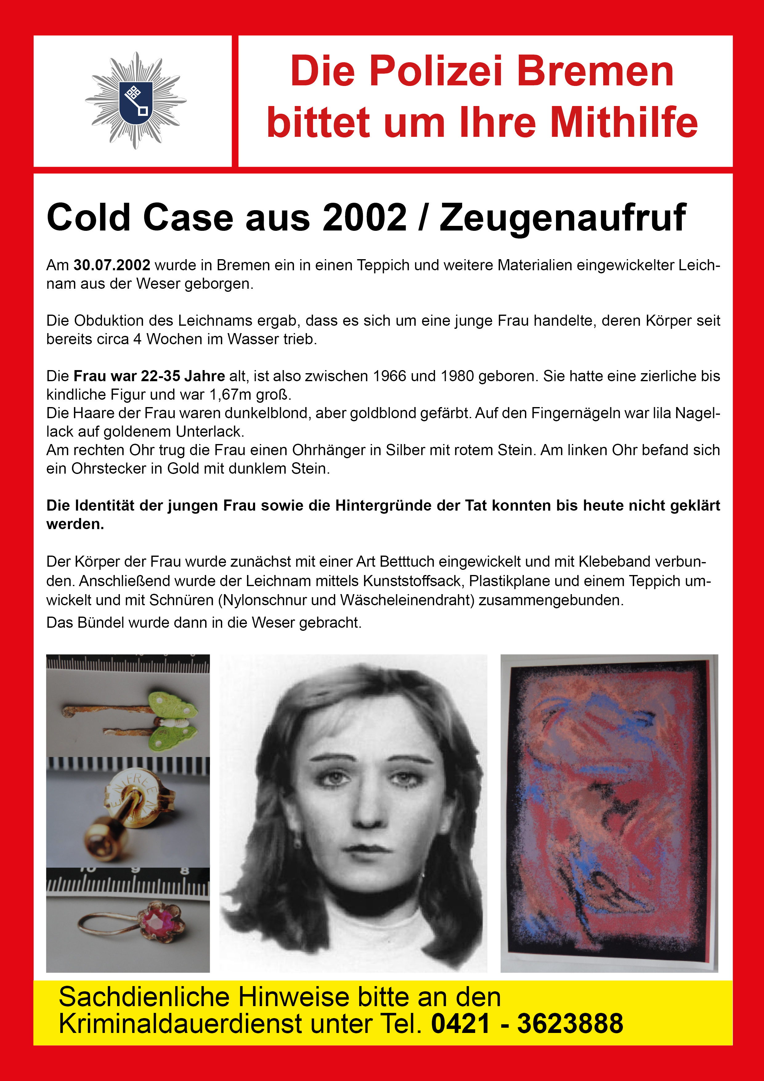 Zurück zu Bremer "Cold-Case" bei Aktenzeichen XY: Wer kennt die unbekannte Tote aus der Weser?--